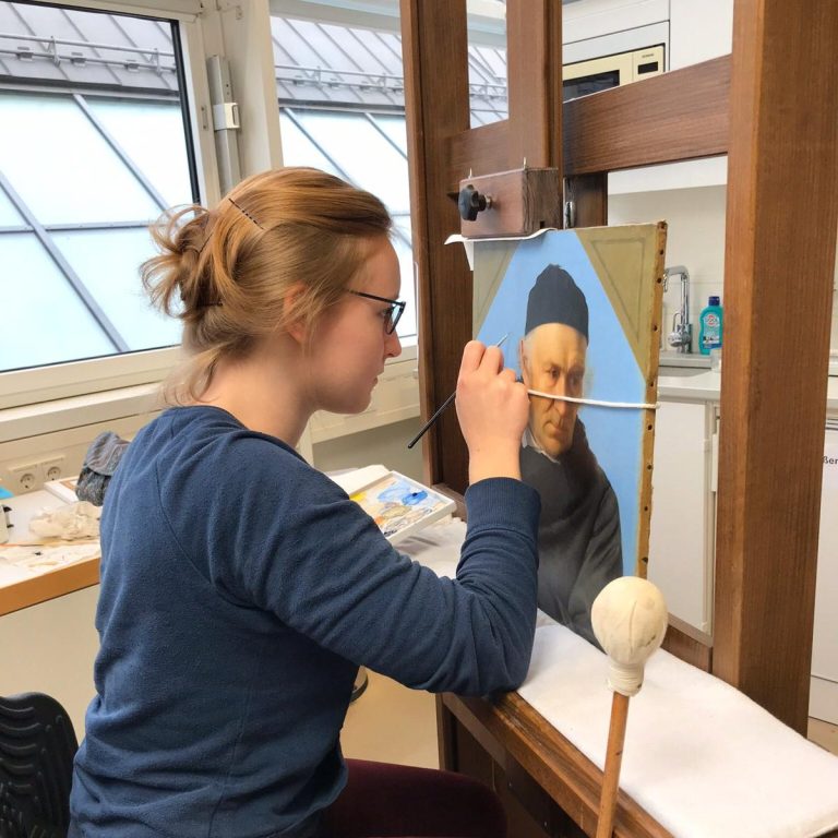 Das wertvolle Objekt bedarf einer professionellen Behandlung. Studierte Restauratoren können durch eine spezifische Voruntersuchung und umfangreiche Materialkenntnisse eine individuelle Behandlung für das Kunstwerk konzeptionieren und durchführen. Dabei werden die historischen Materialien bewahrt und gezielt und zurückhaltend neue eingebracht, die alterungsbeständig und reversibel sind.